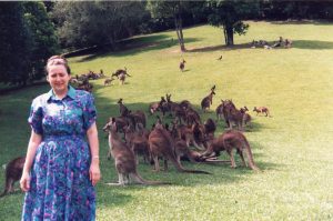 93_Rosalie with kangaroo mob at sanctuary